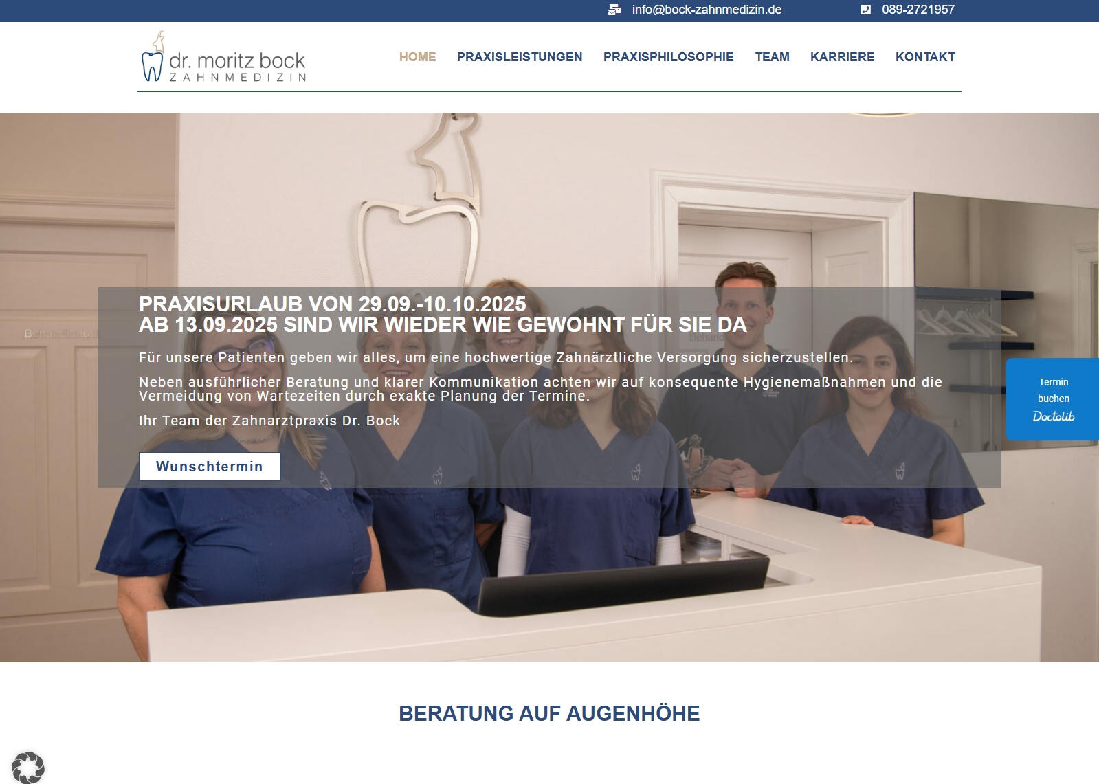 Patient:innen informieren sich heute fast ausschließlich online – über Google, Doctolib oder andere Plattformen. Der erste Eindruck einer Praxis entsteht also nicht mehr im Wartezimmer, sondern bereits auf Ihrer Website. Genau in diesem Moment entscheidet sich, ob jemand Vertrauen aufbaut oder weiterklickt. Mit professionellem Webdesign für Ärzte – Praxiswebsites aus München präsentieren Sie Ihre Praxis modern, vertrauensvolle und patientennah. Eine klar strukturierte, ansprechende Website vermittelt Kompetenz, schafft aktiv Vertrauen und sorgt dafür, dass sich neue Patient:innen von Anfang an gut aufgehoben fühlen. Ob Hausarztpraxis, Zahnarzt oder Facharzt – ein durchdachtes Webdesign ist heute ein entscheidender Faktor für den Erfolg Ihrer Praxis im digitalen Raum.